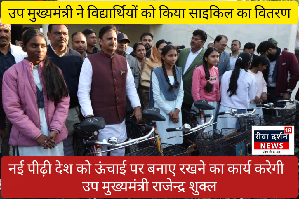 प्रदेश के उप मुख्यमंत्री राजेन्द्र शुक्ल ने कहा कि आज के बच्चे कल का भविष्य हैं। हमारा देश तेजी से आगे बढ़ रहा है। देश को ऊंचाई पर बनाए रखने का कार्य नई पीढ़ी को ही करना है। श्री शुक्ल ने शासकीय मार्तण्ड क्रमांक दो विद्यालय में कक्षा 9वीं के विद्यार्थियों को साइकिल का वितरण किया। उन्होंने दो करोड़ रुपए की लागत से बनाए जाने वाले 12 अतिरिक्त कमरों के निर्माण कार्य का भूमिपूजन भी किया।