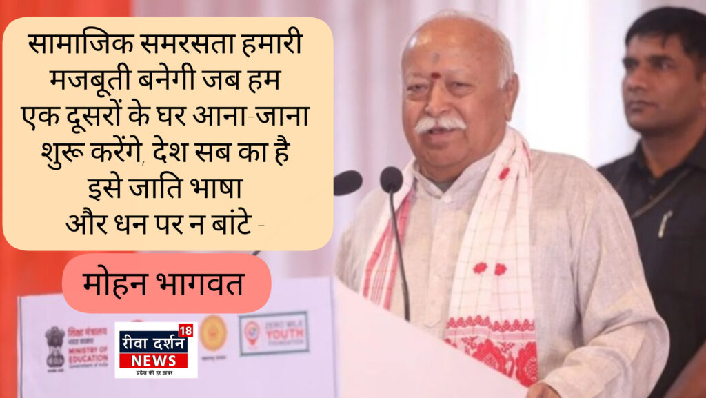 सामाजिक समरसता हमारी मजबूती बनेगी जब हम एक दूसरों के घर आना-जाना शुरू करेंगे, देश सब का है इसे जाति भाषा और धन पर न बांटे – मोहन भागवत