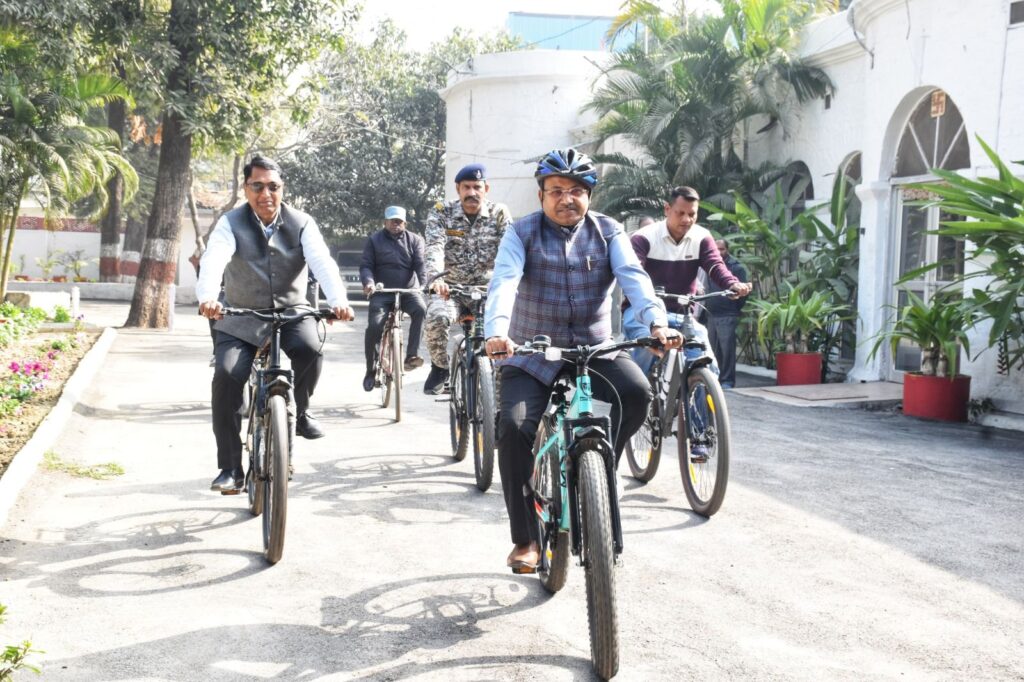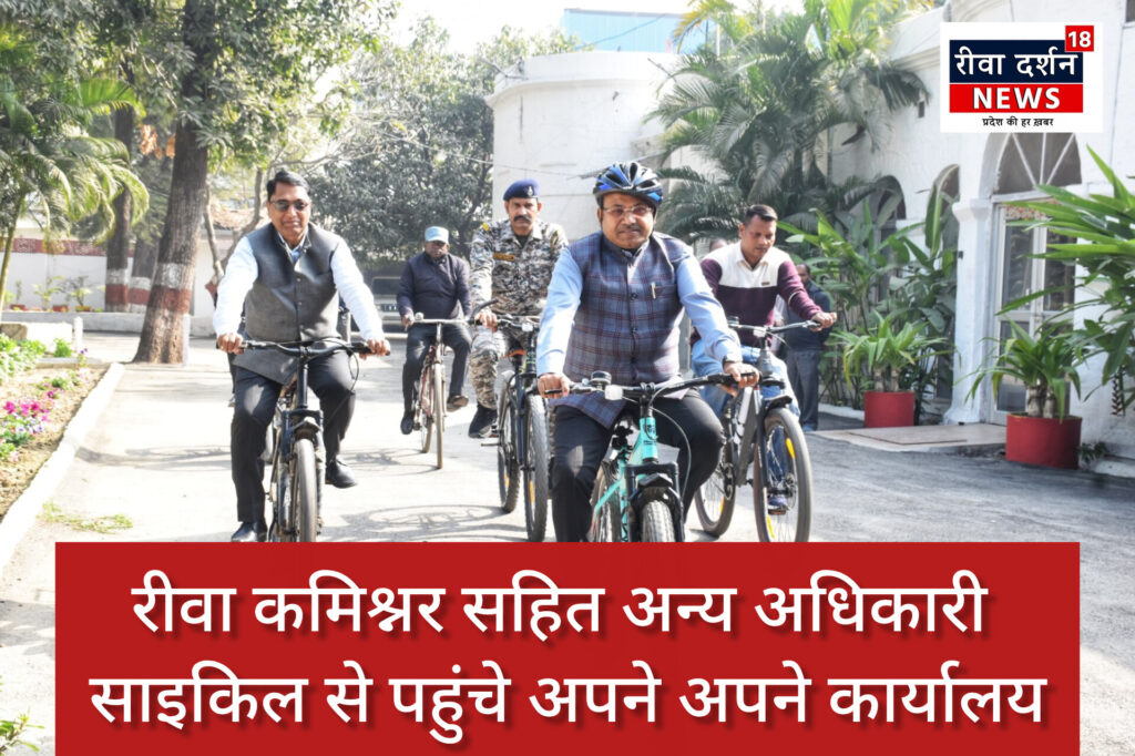 रीवा कमिश्नर सहित अन्य अधिकारी साइकिल से पहुंचे अपने अपने कार्यालय