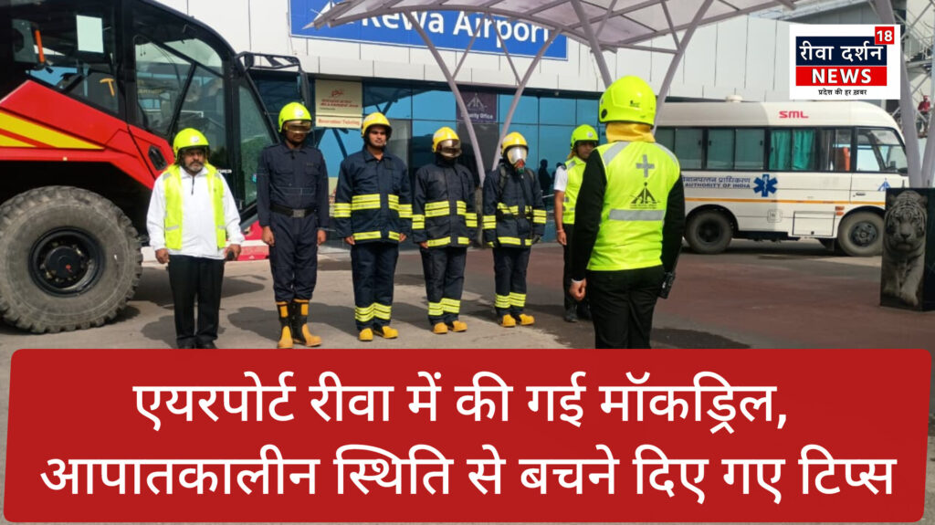 एयरपोर्ट रीवा में की गई मॉकड्रिल, आपातकालीन स्थिति से बचने दिए गए टिप्स