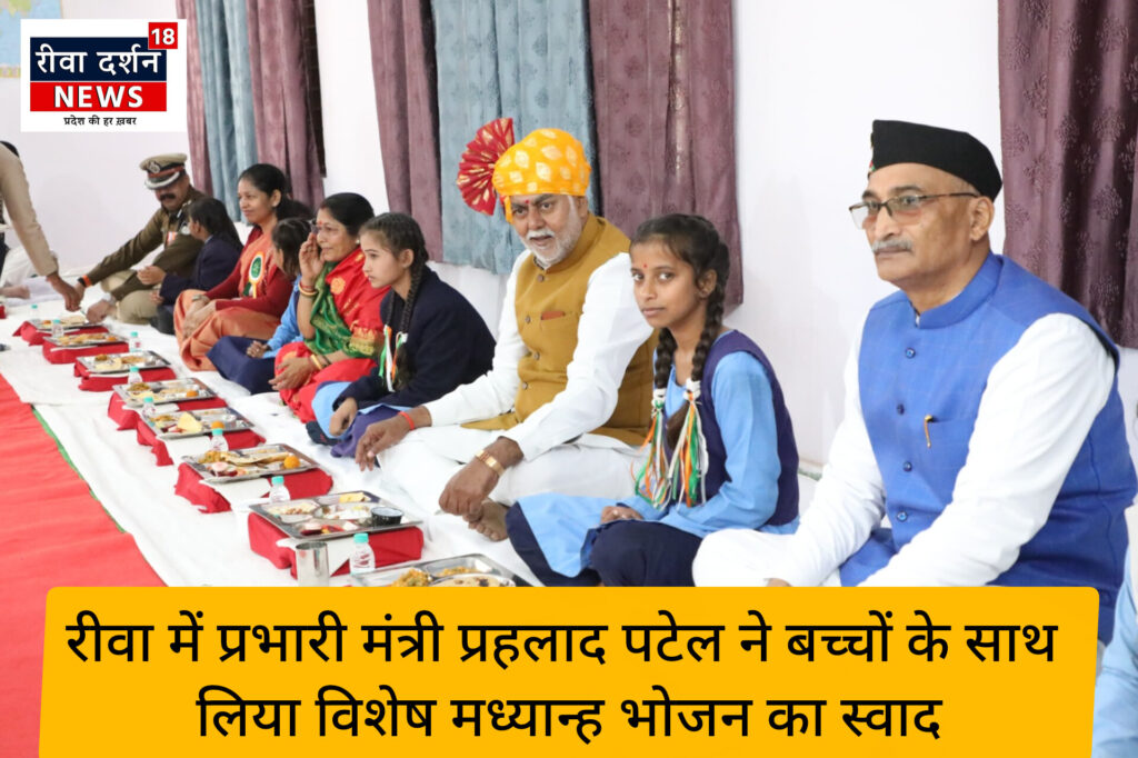 प्रभारी मंत्री प्रहलाद पटेल ने बच्चों के साथ किया विशेष मध्यान्ह भोजन