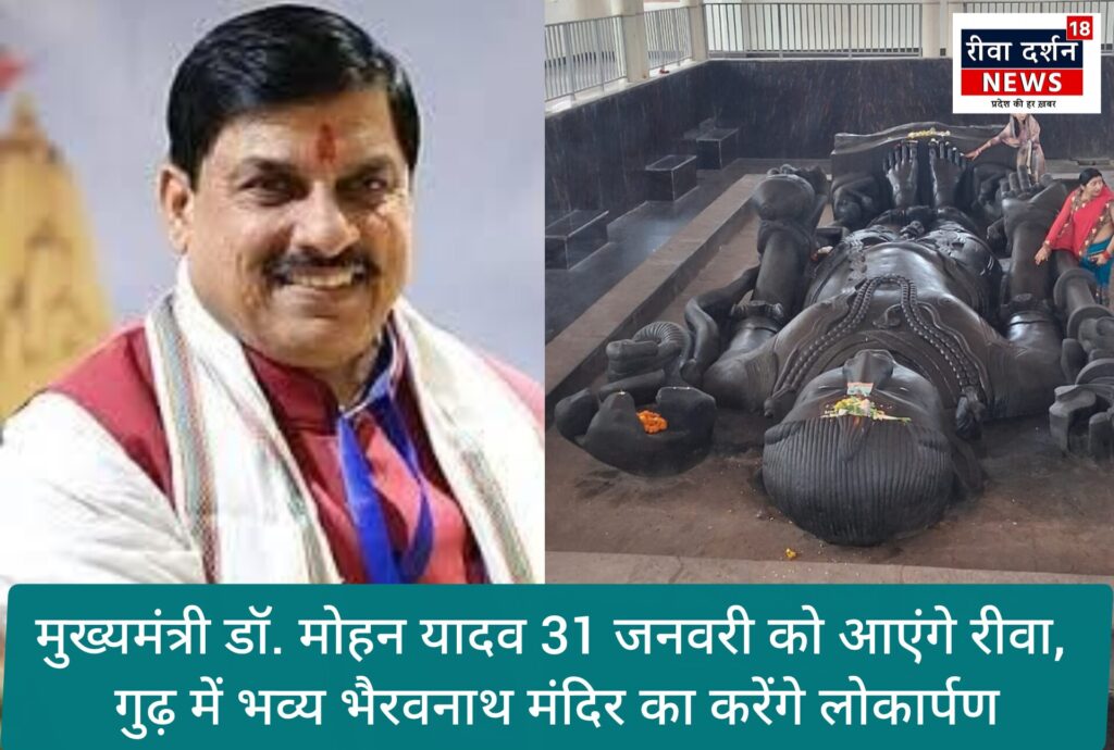 मुख्यमंत्री डॉ. मोहन यादव 31 जनवरी को एक दिवसीय प्रवास पर रीवा आएंगे। मुख्यमंत्री दोपहर एक बजे गुढ़ विधानसभा क्षेत्र में आयोजित समारोह में भैरवनाथ मंदिर का लोकार्पण करेंगे। गुढ़ के समीप ग्राम खामडीह में भैरव बाबा की विशाल प्राचीन प्रतिमा है। यह प्रतिमा दुर्लभ शयन मुद्रा में है। स्थापत्य की दृष्टि से इसका निर्माण लगभग 10वीं शताब्दी में किया गया। प्रतिमा वर्षों से खुले आसमान के नीचे थी। इसमें शासन की एलएडी योजना के तहत प्राचीन मंदिर का जीर्णोद्धार तथा अन्य निर्माण कार्य कराए गए हैं। विशाल भैरव बाबा प्रतिमा के चारों ओर दो मंजिला मंदिर का निर्माण कार्य किया गया है। इसकी लागत 180 लाख रुपए है। यह मंदिर हजारों लोगों की आस्था का केन्द्र है।