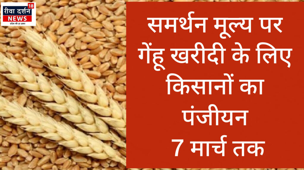 किसानों को उनकी उपज का उचित मूल्य देने के लिए शासन द्वारा समर्थन मूल्य पर खरीद की जाती है। समर्थन मूल्य पर गेंहू खरीदी के लिए किसानों का पंजीयन 7 फरवरी से शुरू हो गया है। पंजीयन 7 मार्च तक होगा। किसान एमपी किसान एप, ई-उपार्जन पोर्टल तथा ई-उपार्जन मोबाइल एप पर अपना पंजीयन करा सकते हैं।
