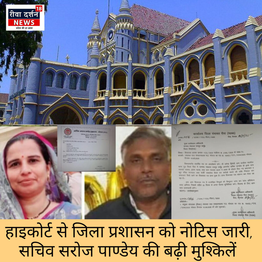 भ्रष्टाचार पर प्रशानिक तंत्र की लचर कार्यप्रणाली को देखते हुए युवा समाजसेवी व पत्रकार उपेन्द्र द्विवेदी ने हाइकोर्ट जबलपुर में विद्वान अधिवक्ता आलोक तिवारी के माध्यम से रिट पिटीशन दायर की जिसका रिट पिटीशन नंबर 1901/2026 है, इधर मामले की विधिवत सुनवाई करते हाईकोर्ट के विद्वान न्यायाधीश महोदय ने मध्यप्रदेश राज्य शासन, समेत डायरेक्टर जर्नल ऑफ पुलिस मुख्यालय भोपाल, डी.जी.पी. मुख्यालय आर्थिक अपराध प्रकोष्ठ भोपाल, एवं आर्थिक अपराध शाखा पुलिस अधीक्षक रीवा, तथा मुख्य कार्यपालन अधिकारी जिला पंचायत रीवा सहित अन्य जिम्मेदार अधिकारियों को नोटिस जारी कर जवाब तलब किया है, जिसके बाद भ्रष्टाचारी सचिव को संरक्षण देने वाले विभागों और अधिकारियों मे हड़कंप मच गया है। वहीं भ्रष्टाचारी सचिव सरोज पाण्डेय तथा भ्रष्टाचार को पनाह देने वाले अधिकारियों की मुश्किलें बढ़ गई है।