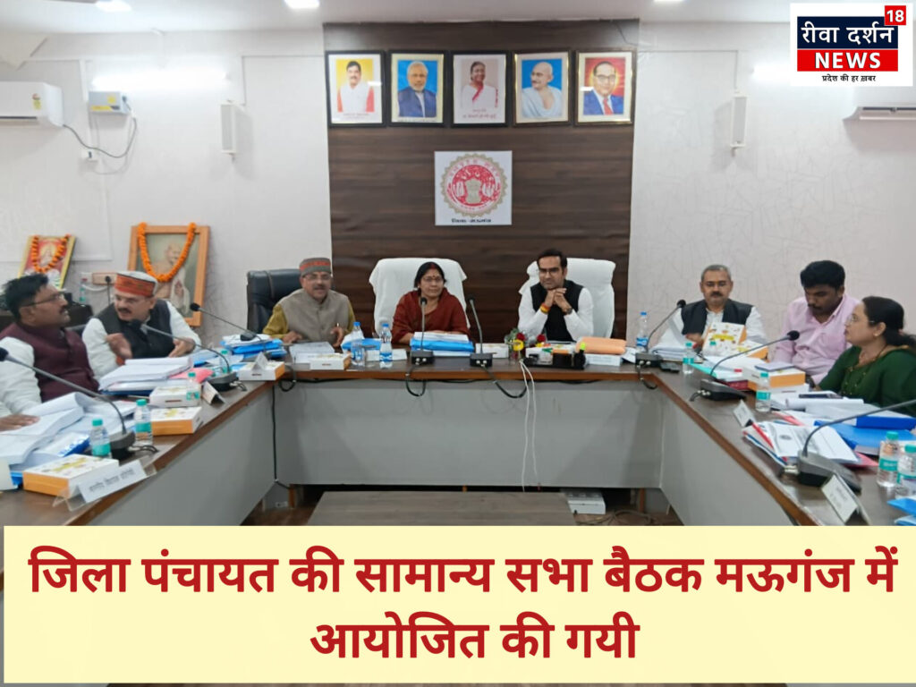 जिला पंचायत अध्यक्ष श्रीमती नीता कोल की अध्यक्षता में जिला पंचायत रीवा की सामान्य सभा की बैठक मऊगंज में आयोजित की गयी। कलेक्टर सभागार में बैठक की अध्यक्षता करते हुए श्रीमती नीता कोल ने कहा कि जिला पंचायत सदस्यों की विशेष मांग पर मऊगंज में जिला पंचायत की सामान्य सभा की पहली बैठक आयोजित की गयी। बैठक में प्रधानमंत्री ग्रामीण सड़क फेज-4 के तहत 304 ग्रामों एवं मुख्यमंत्री मजराटोला सड़क योजना अन्तर्गत 1320 ग्रामों के सड़क निर्माण का सामान्य सभा में अनुमोदन किया गया।