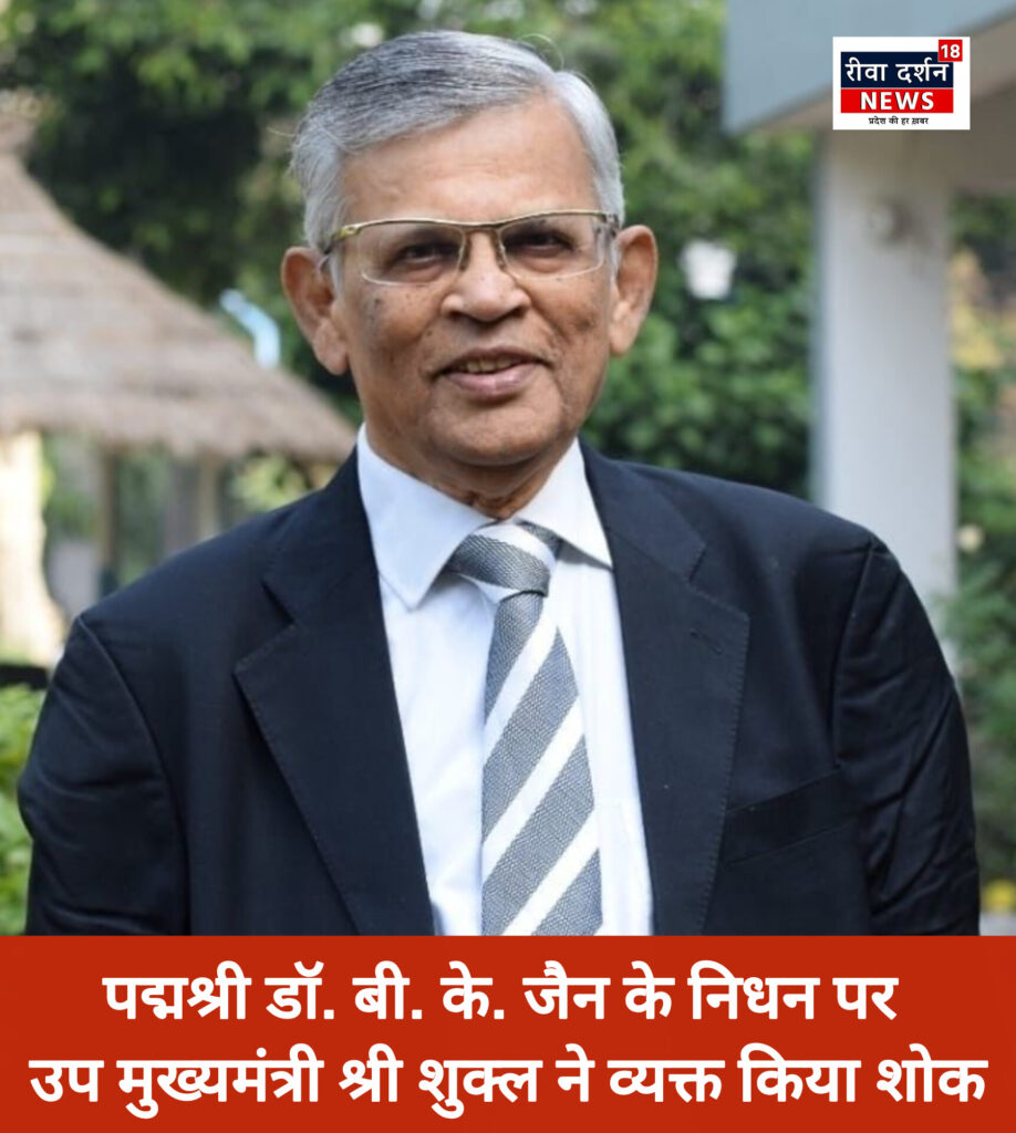 उप मुख्यमंत्री श्री राजेन्द्र शुक्ल ने पद्मश्री डॉ. बी. के. जैन के निधन पर गहन शोक व्यक्त किया है। उन्होंने कहा कि डॉ. जैन के निधन का समाचार अत्यंत दुःखद एवं हृदयविदारक है। उप मुख्यमंत्री श्री शुक्ल ने कहा कि डॉ. जैन ने सद्गुरु सेवा संघ ट्रस्ट के माध्यम से नेत्र चिकित्सा सेवा को जनसेवा का व्यापक अभियान बनाकर हजारों जरूरतमंदों के जीवन में प्रकाश पहुँचाया। चित्रकूट में संत समाज, गरीब एवं असहाय जनों के लिए उनका समर्पण, सेवा-भाव और मानवीय दृष्टिकोण सदैव स्मरणीय रहेगा। उनका संपूर्ण जीवन करुणा, सेवा और मानवता के उच्च मूल्यों की प्रेरक मिसाल है।