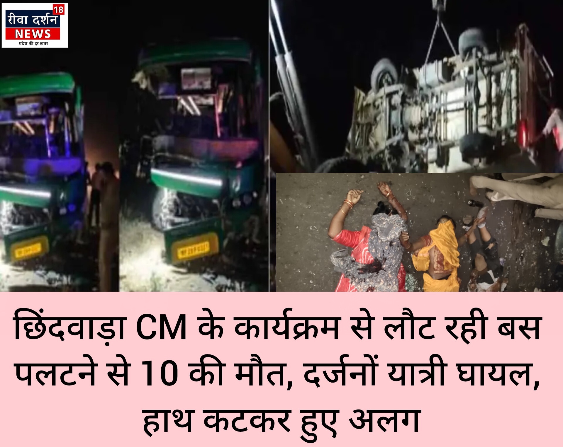 छिंदवाड़ा CM के कार्यक्रम से लौट रही बस पलटने से 10 की मौत, दर्जनों यात्री घायल, हाथ कटकर हुए अलग